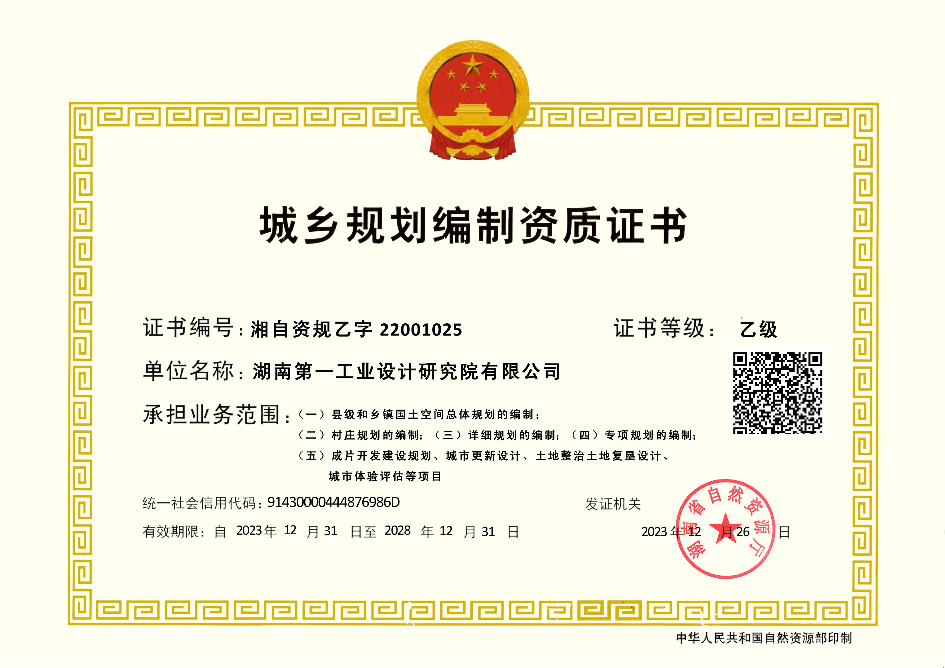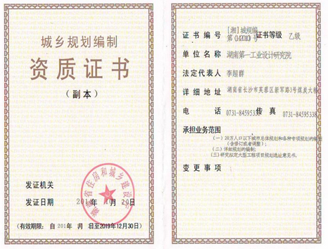 城市規(guī)劃編制資質證書