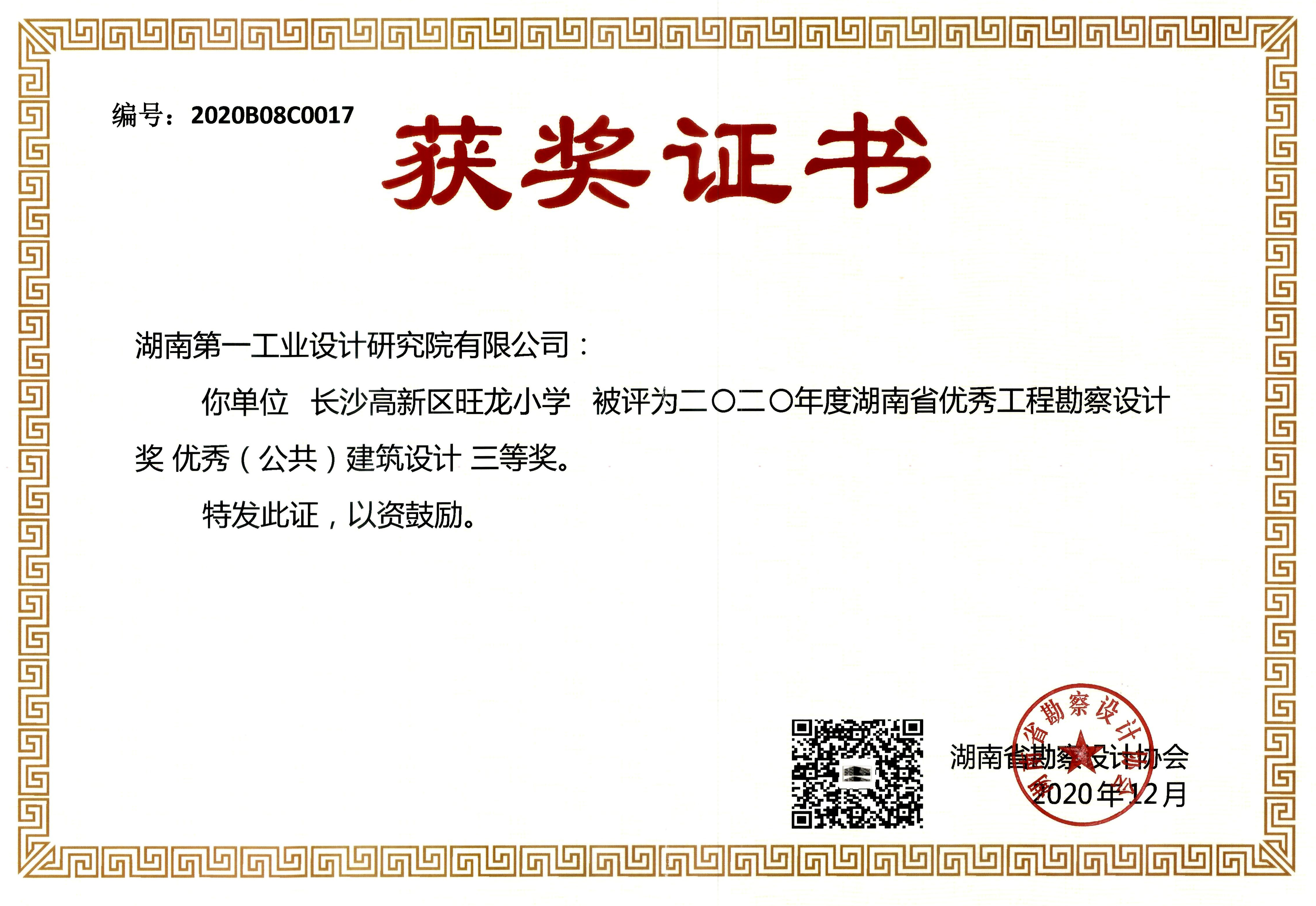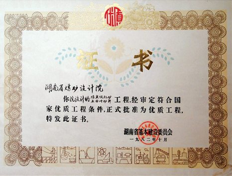 湖南省優(yōu)秀設計表揚金獎(1984)